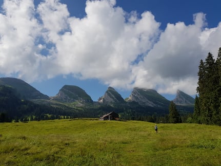 Trotz etwas schlechter Wettervorhersage fuhren wir am Samstag morgen spontan ins Toggenburg. Eigentlich planten wir wieder irgendwo "wild" zu übernachten, entdeckten dann aber einen Campingplatz in Wildhaus. Von da aus ging es dann zuerst auf eine kleine MTB Tour (mehr Infos mit GPS Daten). Wir hatten Glück und erwischten keinen Regentropfen, der Säntis blieb aber während der ganzen Tour hinter den dunklen Wolken versteckt. Am Sonntag wachten wir bei kühlen 11 Grad aber mit blauem Himmer im Camper auf. Für einen Trailrun fuhren wir nach Unterwasser. Gerannt sind wir einen Family Wanderweg: den Klangweg gefolgt vom Sagenweg (mehr Infos mit GPS Daten). Wir genossen die schöne Aussicht und flirteten mit den vielen Kühlen auf den Weiden.
