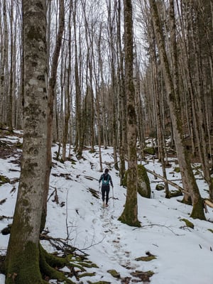 Eigentlich wollten wir erst im Frühling weiterlaufen. Doch dann kam Ende Januar ein unerwartet stabiles Wetterfenster: trocken, kalt, klar. Also packten wir spontan unsere Rucksäcke und standen ein paar Tage später wieder in Einsiedeln, bereit für die nächste Etappe unseres Jakobsweg-Projekts.