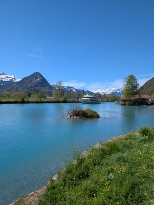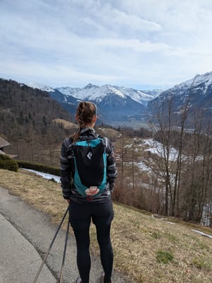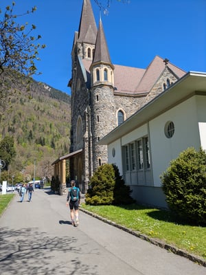 Danach legten wir eine längere Pause ein. Der Frühling liess auf sich warten und unsere Motivation, bei Dauerregen weiterzuziehen, war begrenzt. Erst im April, als es endlich milder wurde, schnürten wir wieder unsere Trailrunning-Schuhe. Doch der Weg meinte es nicht gut mit uns: Schon nach rund 20 Kilometern machte sich Mikes Knie bemerkbar und wir brachen die Etappe in Interlaken ab. Statt weiterzuwandern nahmen wir den Bus nach Spiez, wo wir übernachteten. Schade – aber auch das gehört zum Camino.