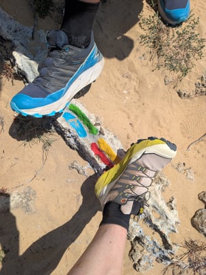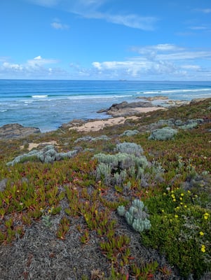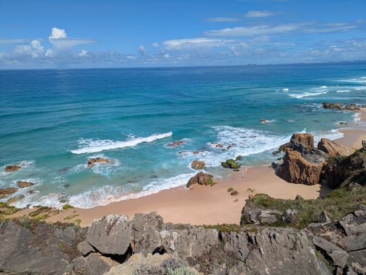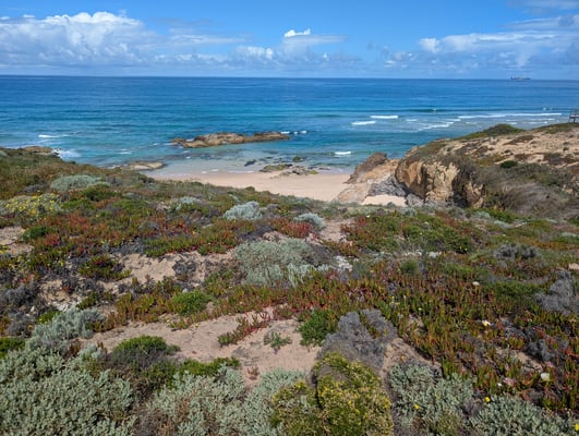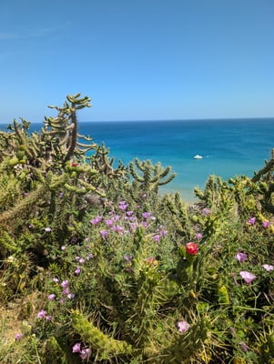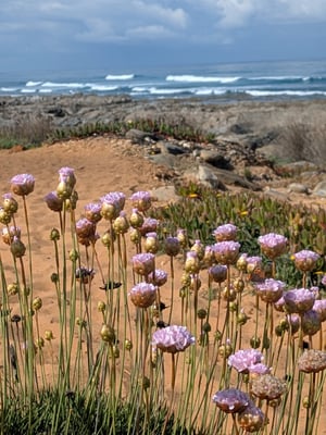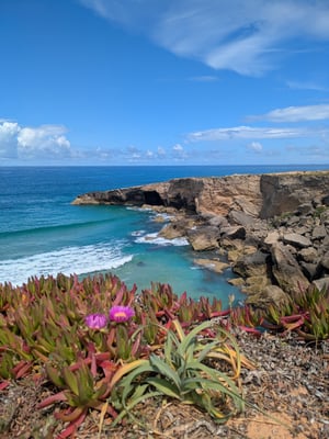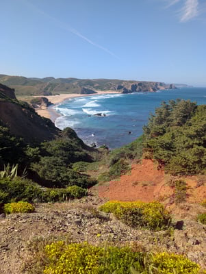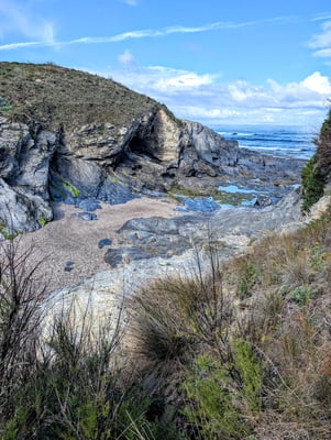 Insgesamt legten wir 215 Kilometer in 11 Tagen zurück. Die Route führte über schroffe Klippen, durch Pinienwälder, über Holzstege und sehr oft durch tiefen, weichen Sand. Das machte die Etappen zwar körperlich fordernd, doch die landschaftliche Vielfalt war atemberaubend: endlose Strände, dramatische Felsformationen, einsame Buchten, bunte Blumenwiesen und immer wieder das offene Meer direkt neben uns. Jeder Tag fühlte sich anders an – mal wild und windig, mal ruhig und fast meditativ. Und jedes Dorf, das wir erreichten, empfing uns mit gutem Kaffee, einfachem Essen, herzlicher Gastfreundschaft und diesem besonderen Gefühl von Ankommen.