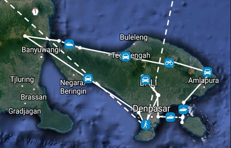 Velotage: keine, die Fahrräder haben wir in Bali in einem Storage deponiert.