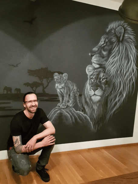 Gestaltet mit Leidenschaft – von Tattoos über Airbrush bis zur Wandmalerei. Kreativität begleitet ihn überallhin.